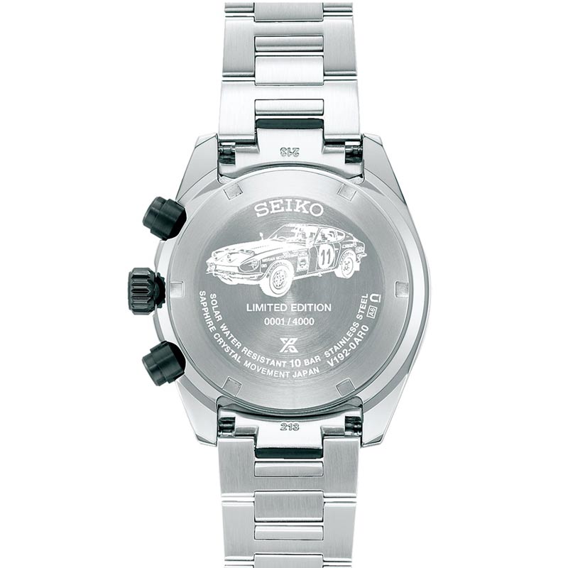Чоловічий годинник Seiko Prospex Speedtimer Datsun 240Z Solar Chronograph Limited Edition SSC957P1 входить до колекції Prospex. Перша модель Datsun 240Z була випущена в 1969 році, того ж року, коли був створений Speedtimer. У 1971 році, прикрашений логотипом Seiko, Datsun 240Z з номером 11 на боці підкорив сувору місцевість, подолавши 6200 кілометрів до перемоги в Східноафриканському ралі-сафарі, яке вважається однією з найскладніших гонок у світі. Лімітована серія налічує 4000 екземплярів.